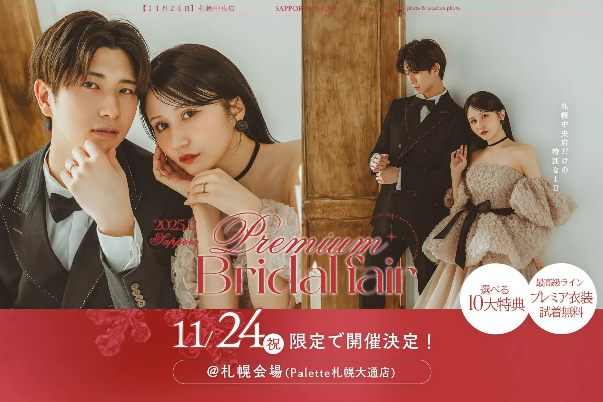札幌中央店で素晴らしいフォトウェディングの機会、『プレミアムブライダルフェア』が開催されます。この特別なイベントは、ただの写真撮影を超え、一生に一度の特別な体験を提供することを目的としています。花嫁たちに向けて、最高の一日を最高の形で残すことの重要性をお伝えしたいと思っています。
