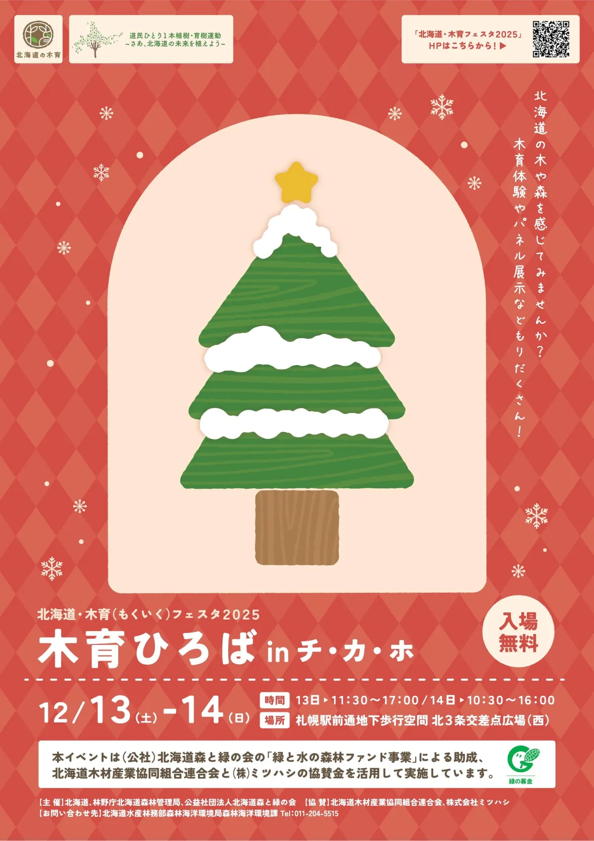 北海道の冬にぴったりのイベント、木育(もくいく)フェスタ2025が札幌駅前の地下歩行空間、チカホにて開催されます。今年のイベントは12月13日(土)と14日(日)の二日間にわたり、冬の寒さを和らげる優しい木の温もりを感じることができる特別な空間が用意されています。