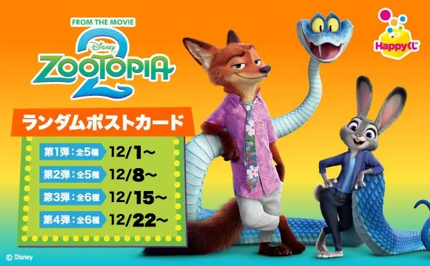 ディズニーの人気映画『ズートピア』の続編がついに公開されます。このたび、セブン‐イレブンでは、その新たなコンテンツとして『ズートピア2』のランダムポストカードが12月1日から販売されます。全国のセブン‐イレブン店内のマルチコピー機を利用して、手軽に入手できるチャンスです!