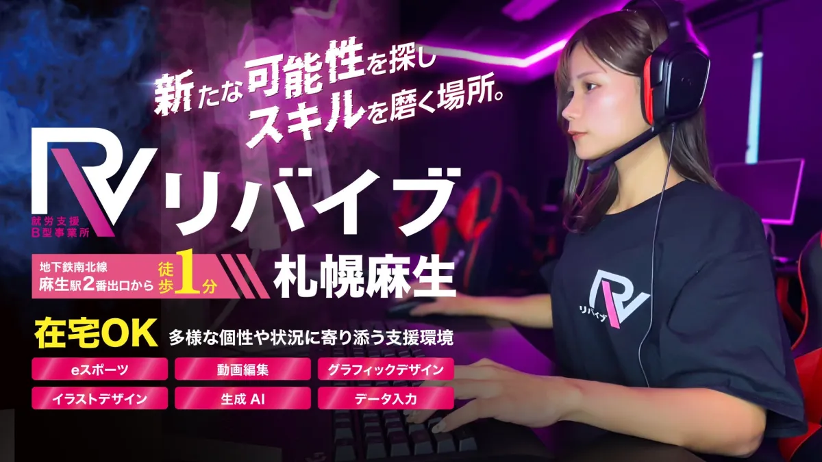 2026年4月1日、札幌市北区に新たな就労継続支援B型事業所「リバイブ札幌麻生」がオープンします。これは、既に展開されている「宮の沢」と「新札幌」に続く3拠点目となります。ここでは、eスポーツや生成AI、動画編集といったデジタル・クリエイティブ分野に特化したプログラムを通じて、利用者の学びと就労を支援します。