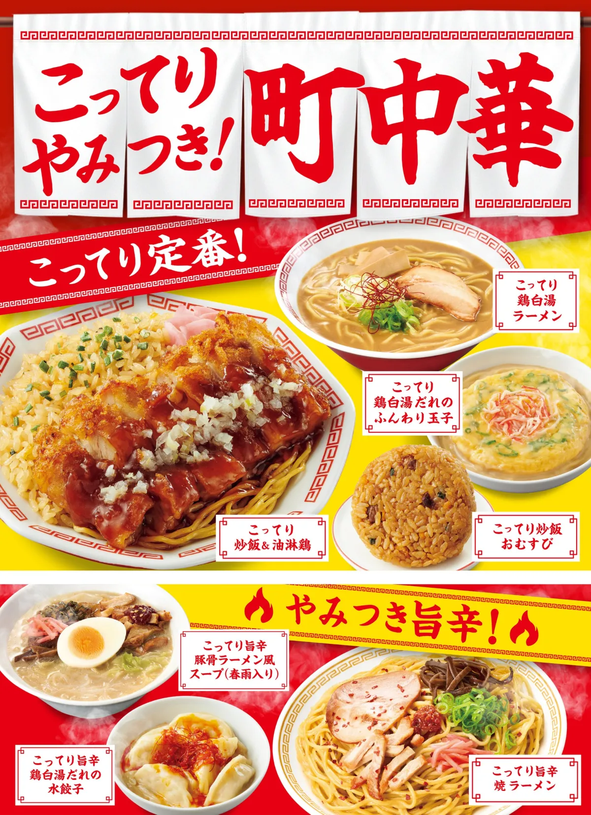 今回のフェアでは、全7種類の「こってりやみつき!町中華」メニューが販売されます。