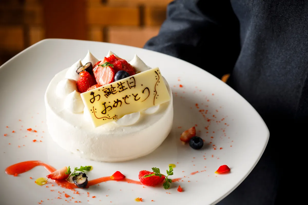 ホールケーキには、お好きなメッセージを記載できるチョコレートプレートを添えることができます。特別な日に向けてのサプライズにも最適です。