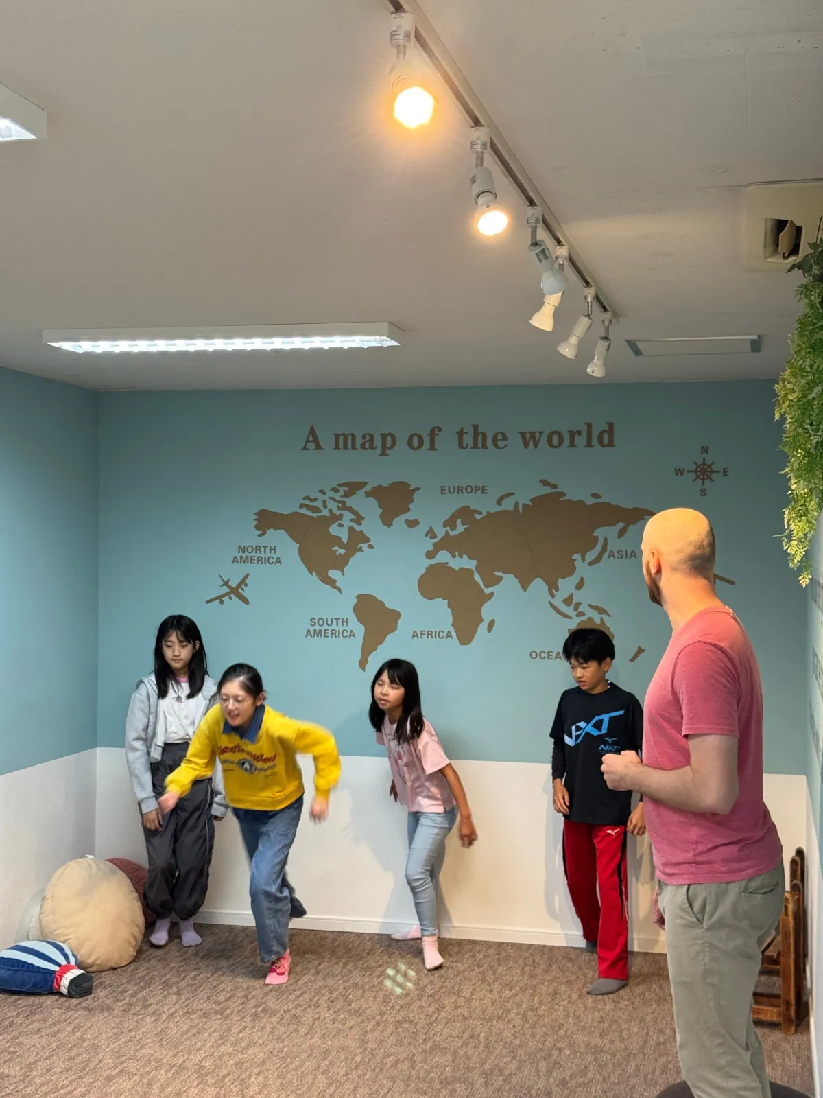 また、教室の環境も自由でリラックスしています。固定の机はなく、クッションやスツールが配置されているため、子どもたちはおやつを食べたり、寝転んだりしながら学べます。この「学ぶことを楽しむ」というスタンスは、EIGが追求する教育理念の一部です。子どもたちが自ら学ぶ意欲を引き出し、「学ばされる」のではなく、「楽しんでいたら身についていた」という形を目指しています。