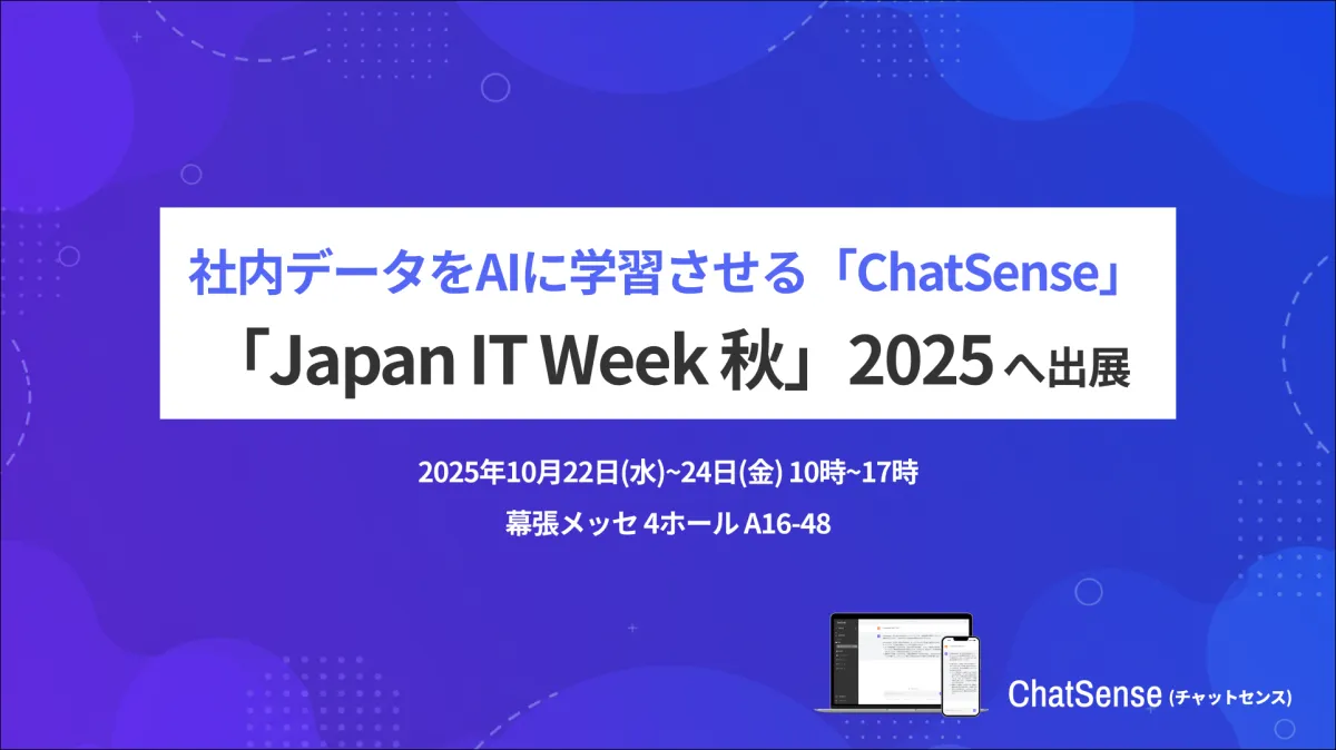 2025年10月22日から24日にかけて、幕張メッセで開催される「Japan IT Week 秋」に、法人向けChatGPTサービス「ChatSense」が出展します。この展示会は、IT業界における最新技術やサービスが一堂に会する重要なイベントであり、多くの企業が参加しています。