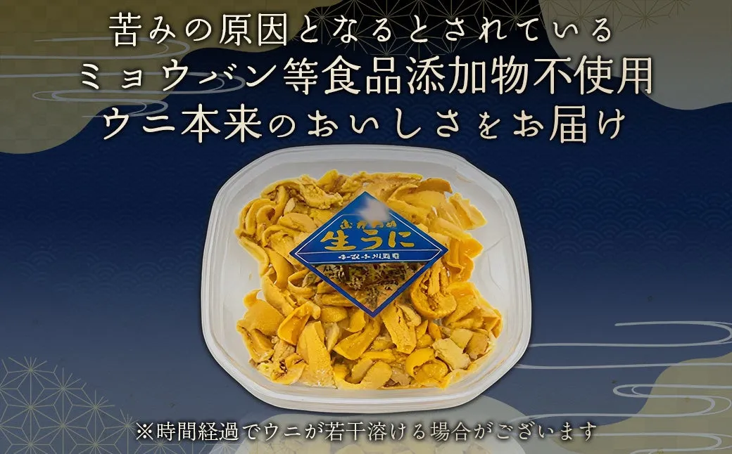 また、漁業者の丁寧な手作業で収穫された「キタムラサキウニ」は、極めて希少な一品です。ミョウバンなどの添加物を一切使わず、ウニ本来の美味しさを楽しむことができます。その甘みと独特の風味は、刺身やうに丼として楽しむのに理想的です。