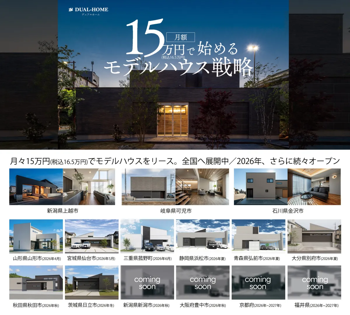 本年は全国で5棟以上のモデルハウスをオープンする予定で、DUAL HOMEの高品質な性能や空間設計を体感できる機会を提供します。